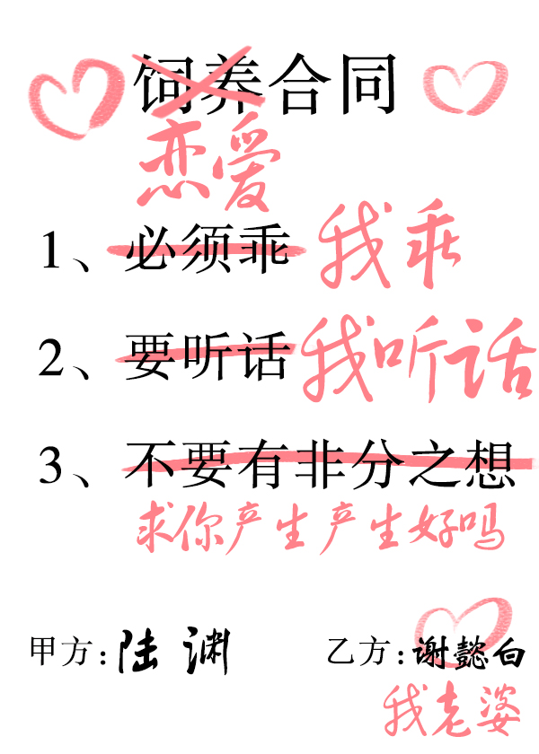 简介:【隔壁《联姻选我我超甜》已开,戳专栏可看~】[霸道爱吃醋小狼狗攻×感情迟钝乖巧美人受]刚开始——陆渊一脸不屑,傲慢道:“我喜欢乖一点的,听话一点的,还有不要以为自己长得好看就动不该有的念头,我是不会喜欢你的。”谢懿白点头说知道了。合约期间,谢懿白把陆渊当做自己老板,尽职尽责,乖巧又听话。而没经验的陆渊则愣生生把合约关系搞成了谈恋爱,还丝毫不觉得有什么问题,总觉得谢懿白对他这么好,肯定是爱惨了他,暗地里喜滋滋。谁知道合同到期那天。谢懿白收拾包袱,干脆利落的说拜拜,丝毫没有留恋。陆渊:???本文又名《某人总是在自作多情》//《合约到期后请不要纠缠我》//《说好了的不要动不该有的心思呢》——————新文《联姻选我我超甜》,先婚后爱,日常小甜饼,戳专栏可收:严肃成熟无限宠霸总攻X爱脑补戏精小可爱受立意:真爱无价,努力变好